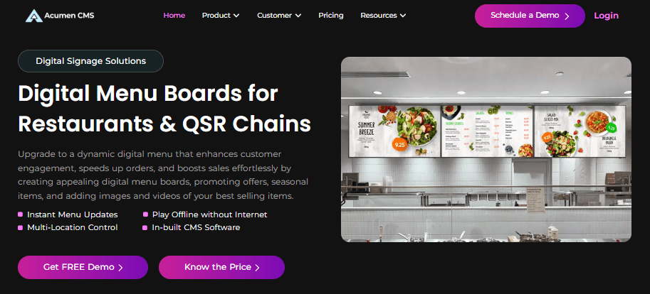Real-time content updates are a core strength of Acumen CMS, enabling retailers to instantly deliver time-sensitive promotions and campaigns. Digital menu boards can highlight limited-time offers, while impulse buys and upselling messages near the checkout counter capture customers’ attention at the moment of purchase.