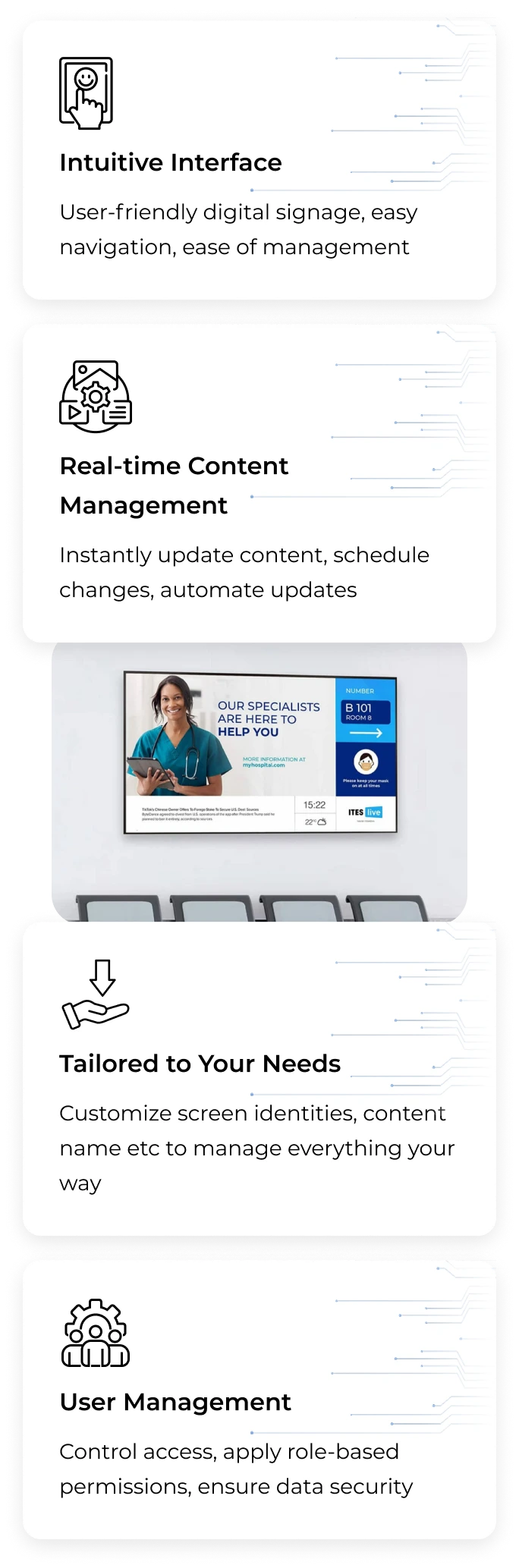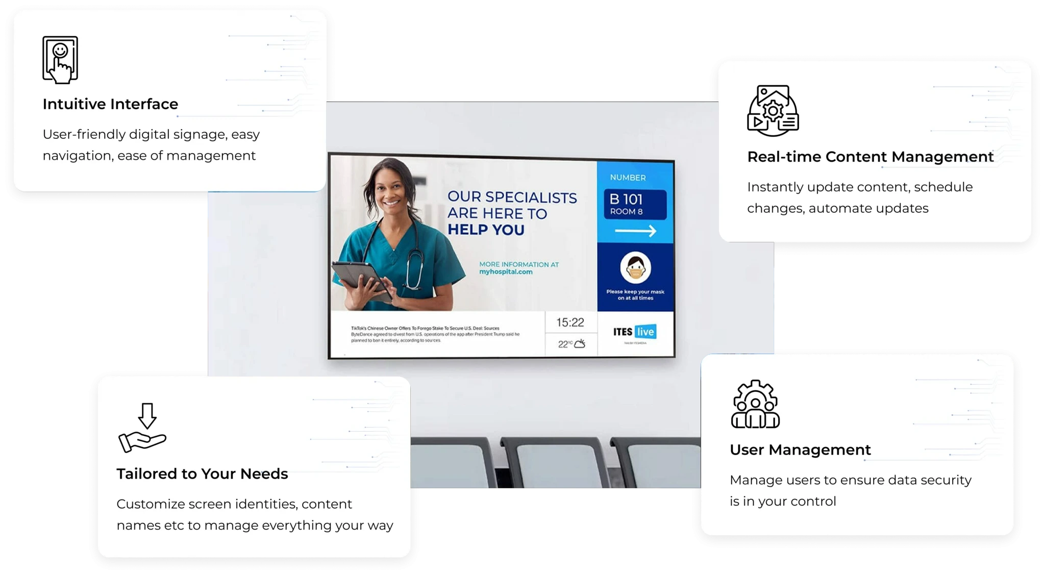 Tailor displays for any use case. Suitable for ICU monitors, reception areas, and more.